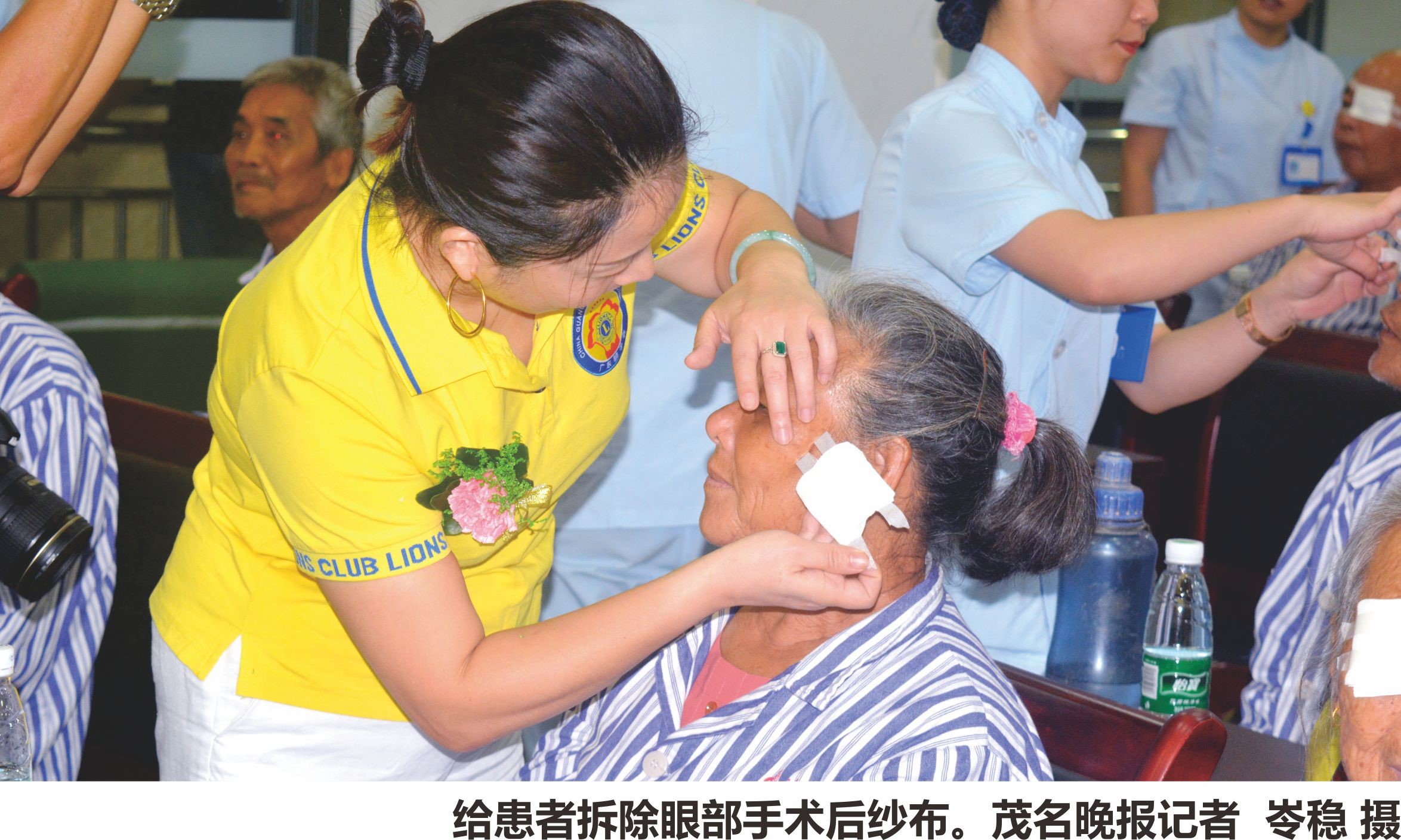 茂名晚报记者看到,启动仪式现场还举行了一场别开生面的揭纱布活动,相关人员为首批救助的30名贫困白内障患者揭开纱布,重见光明。揭开纱布后,来自化州平定镇70多岁的陈伯激动地对记者说:感谢党和政府的关心,感谢爱瞳眼科医院的精心治疗,使我们能够重见光明,更好地生活。